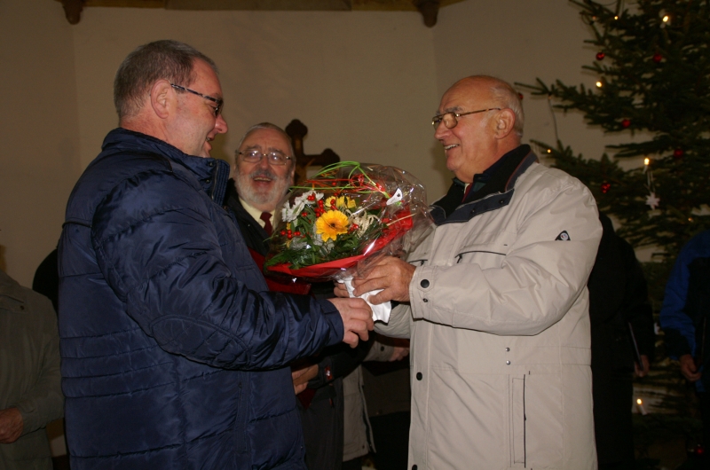 Paul Just bedankte sich bei den Sängerinnen und Sängern und ihren Dirigentinnen mit Blumen und wünschte allen ein friedvolles Weihnachtsfest und ein gesundes neues Jahr.