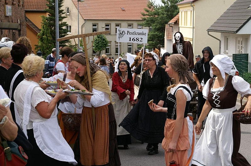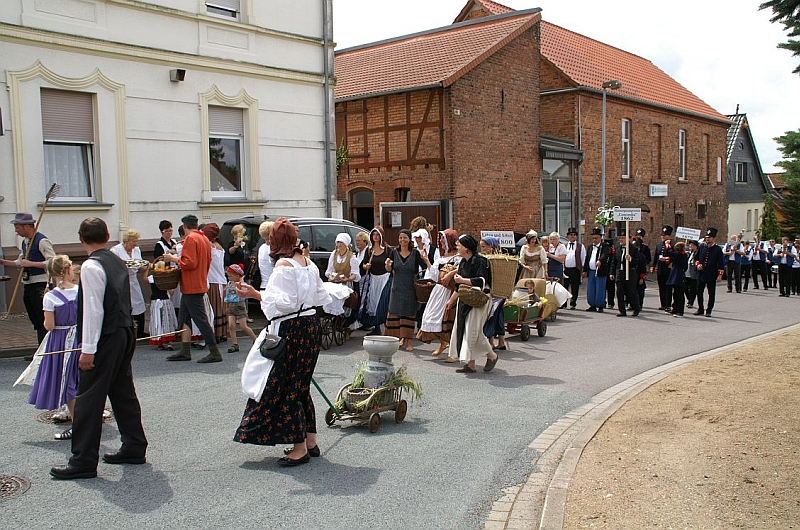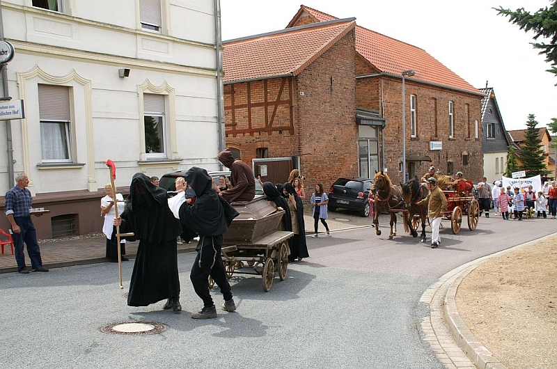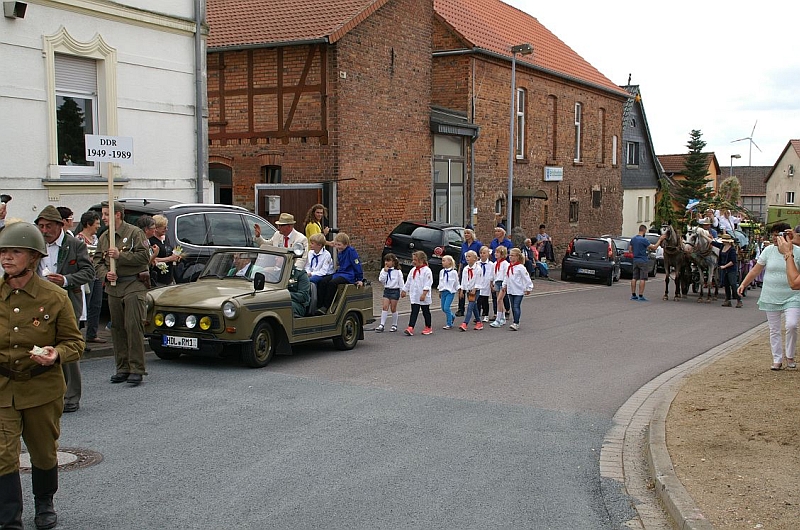 Der Nachmittag wurde eingeläutet mit einem Festumzug durch den Ort, bei dem die verschiedenen Vereine und Gemeinschaften in historischen Trachten und Fahrzeugen, begleitet von Spielmannszügen, die Geschichte seit dem Mittelalter bis zur Gegenwart darstellten.