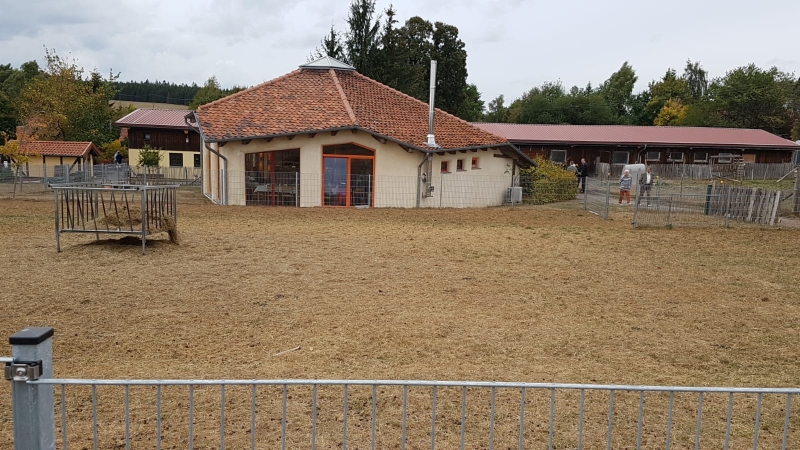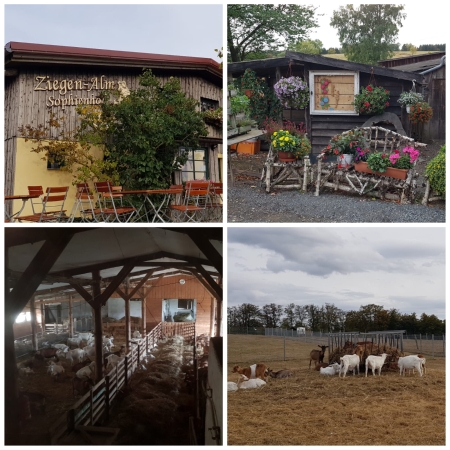 Der Betreiber der Ziegenalm schilderte uns während einer Führung durch das Gelände anschaulich die Geschichte und Gegenwart seines Unternehmens. Wir erfuhren auch viel Wissenswertes über die Aufzucht und Haltung seiner speziellen Ziegenrasse einschließlich der Produktion von Ziegenkäse. Auch Damwild und Hühner sowie einige Rinder und Mufflons leben auf der Alm. Die tierischen Produkte werden sämtlich im angeschlossenen Hofladen angeboten, wovon wir Neundorfer reichlich Gebrauch machten.