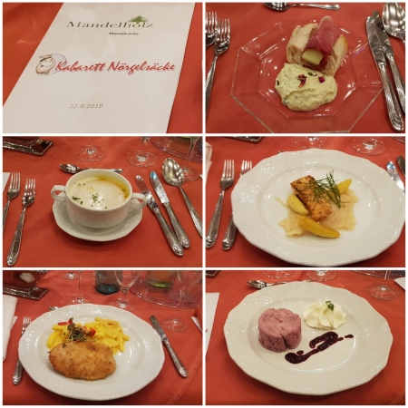 Das anschließende 5-Gänge-Menü zog sich doch sehr in die Länge, da zwischen den einzelnen Gängen immer die “ Nörgelsäcke“ ihre zugegebenermaßen sehr amüsanten Kabarettnummern darboten.